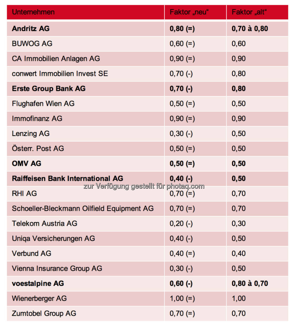 Auf Basis der vorgestern übermittelten ATX-Beobachtungsliste hatte es gestern ganz so ausgesehen, als wäre die VIG ein ganz heisser Kandidat, die RBI per März aus dem ATX-Five zu verdrängen. Seit Dienstag Abend sieht alles aber wieder ganz anders aus: Im ATX-Komitee wurde eine neue Berechnungsgrundlage für die Gewichtung der einzelnen Aktientitel in den österreichischen Indizes der Wiener Börse beschlossen. Für die Berechnung der Streubesitzfaktoren in den österreichischen Indizes wird künftig die genaue Anzahl der Stimmrechte herangezogen.