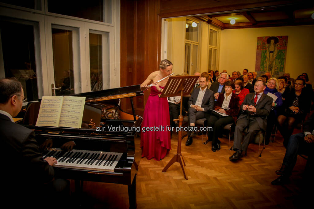 Rechtsanwalt Friedrich Jergitsch (Klavier) und WU-Professorin Anne d’Arcy (Flöte) begeisterten am vergangenen Wochenende in der „Klimt-Villa“ in Wien-Hietzing Familie, Freunde und Kollegen mit Stücken von Johann Sebstian Bach, Fanz Schubert und Albert Roussel. Die Besucher - unter ihnen Willibald Plesser, Bernhard Garger, Walter Lattenmayer, Bernhard Garger, Oberbank-Aufsichsrat-Präsident Ludwg Andorfer, Verbund CFO Peter Kollmann, der Wirtschaftsprüfer und Conwert-Aufsichtsrat Erich Kandler, die Kapitalmarktkenner Friedrich Möstböck, Marielouise Gregory und Rupert-Heinrich Staller sowie Immobilienexpertin Elisabeth Rohr unterstützen die vom ehemaligen Spitzenbankmanager Ernst Löschner gegründete Alpine Peace Crossing Organisation, die sich für Bildungsprojekte für Flüchtlinge engagiert. Auf Grund des großen Interesses wurde das Konzert, eine Initiative des IVA-Interessenverbands für Anleger von Wilhelm Rasinger, statt an - wie ursprünglich geplant - nur einem Termin gleich an 2 Tagen aufgeführt.