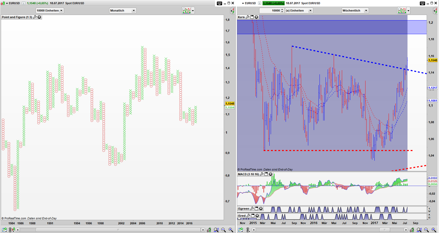 Der Widerstandsbereich, der durch die Hochs der Jahre 2015 und 2016 gebildet wird, hält den Markt noch auf. Jedoch sollte es aufgrund der Fehlpositionierungen verschiedenster Marktteilnehmer dem Fiber möglich sein den Bereich 1.187 bis 1.205 zu erreichen.