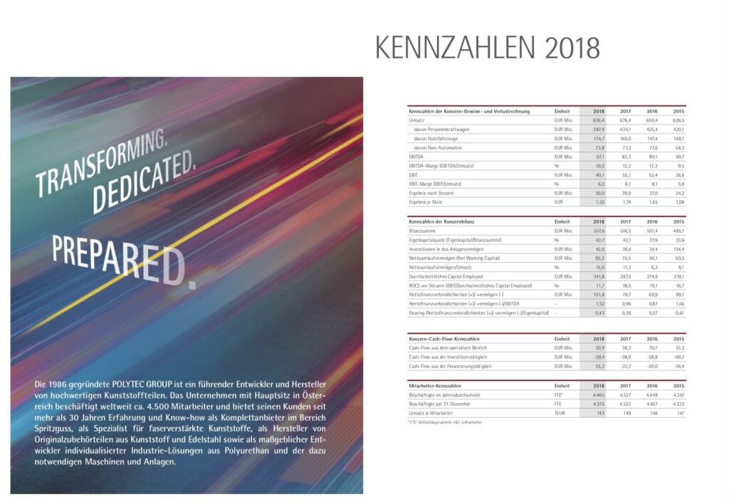 Die 1986 gegründete POLYTEC GROUP ist ein führender Entwickler und Hersteller von hochwertigen Kunststoffteilen. Das Unternehmen mit Hauptsitz in Öster- reich beschäftigt weltweit ca. 4.500 Mitarbeiter und bietet seinen Kunden seit mehr als 30 Jahren Erfahrung und Know-how als Komplettanbieter im Bereich Spritzguss, als Spezialist für faserverstärkte Kunststoffe, als Hersteller von Originalzubehörteilen aus Kunststoff und Edelstahl sowie als maßgeblicher Ent- wickler individualisierter Industrie-Lösungen aus Polyurethan und der dazu notwendigen Maschinen und Anlagen.