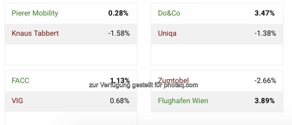 Um 11:28 liegt der ATX TR mit -1.01 Prozent im Minus bei 8009 Punkten (Ultimo 2021: 7849, 2.04% ytd). Topperformer der PIR-Group sind Agrana mit +1.50% auf 17.56 Euro, dahinter DO&CO mit +1.00% auf 85.95 Euro und Strabag mit +0.92% auf 38.2 Euro. Zum Vergleich der DAX: 15798 (+0.21%, Ultimo 2021: 15884, -0.54% ytd).