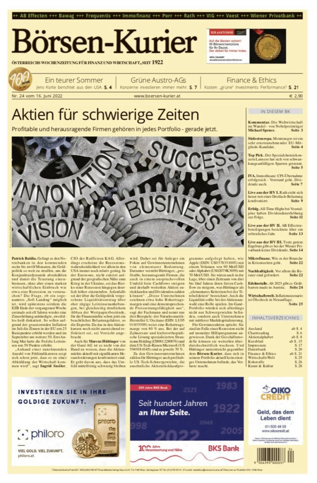 Und wieder ein Blick in den Börsen-Kurier Nr. 24 vom 16. Juni 2022, www.boersen-kurier.at