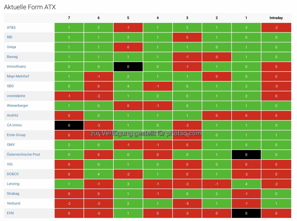 Immer wieder an dieser Stelle bringe ich nun die Formkurve. Wir zeigen die jüngsten 7 Handelstage und intraday. Die Zahl in den Kästen ist der gerundete Prozentwert. Und dann rankt unser Robot, reinsehen unter https://boerse-social.com/bsngine/form/atx bzw. in der 2. Welle unter https://boerse-social.com/bsngine/form/at