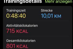 Ein Samstag-morgen-Zehner vor Mamas 80er-Feier, die Kinder haben noch geschlafen, leicht regnerisch war es, damit super von der Luft her, ein absolut entspannter Lauf. Aktivität: Lauf Dauer: 00:48:52 Distanz: 10 030 Pace: 04:52 km h: 12.33 Schuhe: Asics App: Runplugged Uhr: Apple Watch Runkit rechnet: Christian ist im Mai bisher 72,760 km gelaufen, im Schnitt täglich 10,394 km, ein Plus von 255,89 Prozent gegenüber dem April, als Christian 2,921 km Tagesschnitt hatte. Christians Top-Monat bisher: November 2020 mit 10,999 km täglich. a href=" runkit profil 5 christian_drastil" target="_blank"> >> Zum Runkit Profil von Christian Drastil Weitere Einträge bzw. selbst gratis anmelden, Aktivitäten verwalten und bloggen! » Weiterlesen