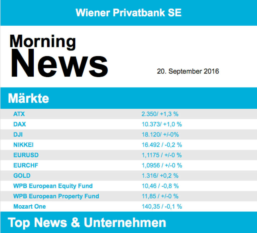 Aus den Morning News der Wiener Privatbank: "In einem verhaltenen europäischen Umfeld hat s...