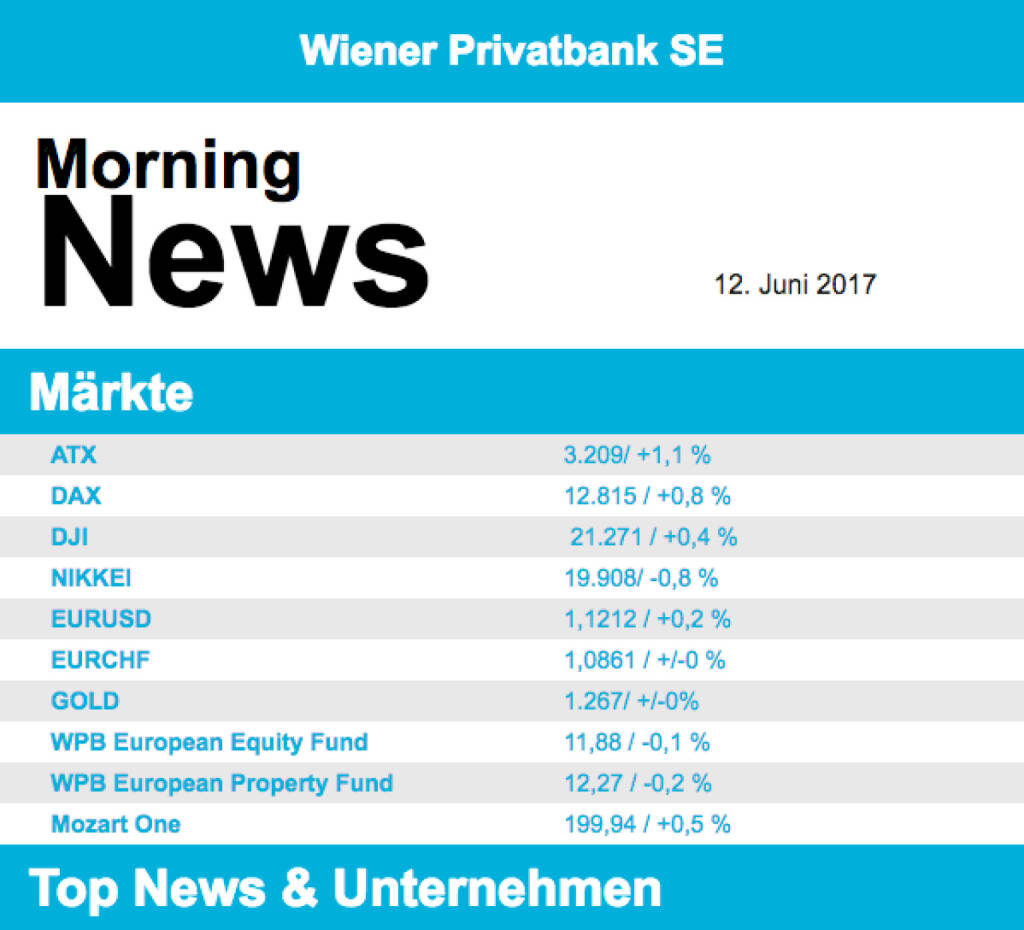Aus den Morning News der Wiener Privatbank: "Der Wiener Aktienmarkt hat sich gestern zum Wochena...