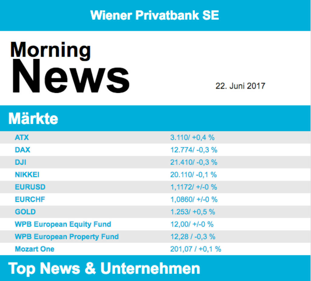 Aus den Morning News der Wiener Privatbank: "In einem verhaltenen europäischen Umfeld hat s...