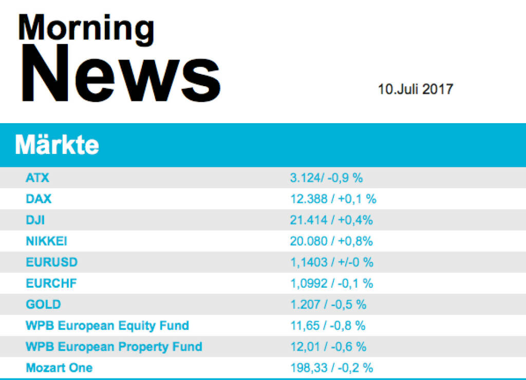 Aus den Morning News der Wiener Privatbank: "In einem verhaltenen europäischen Umfeld hat s...