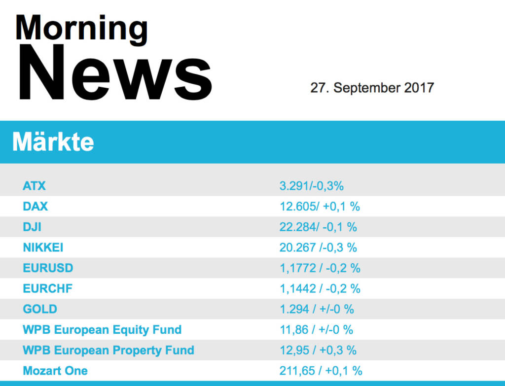 Aus den Morning News der Wiener Privatbank: "Der Wiener Aktienmarkt hat sich gestern zum Wochena...