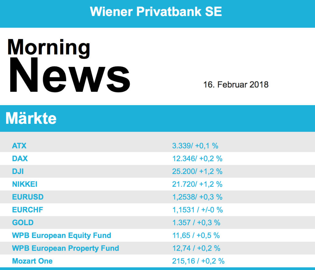 Aus den Morning News der Wiener Privatbank: "Der Wiener Aktienmarkt hat sich gestern zum Wochena...