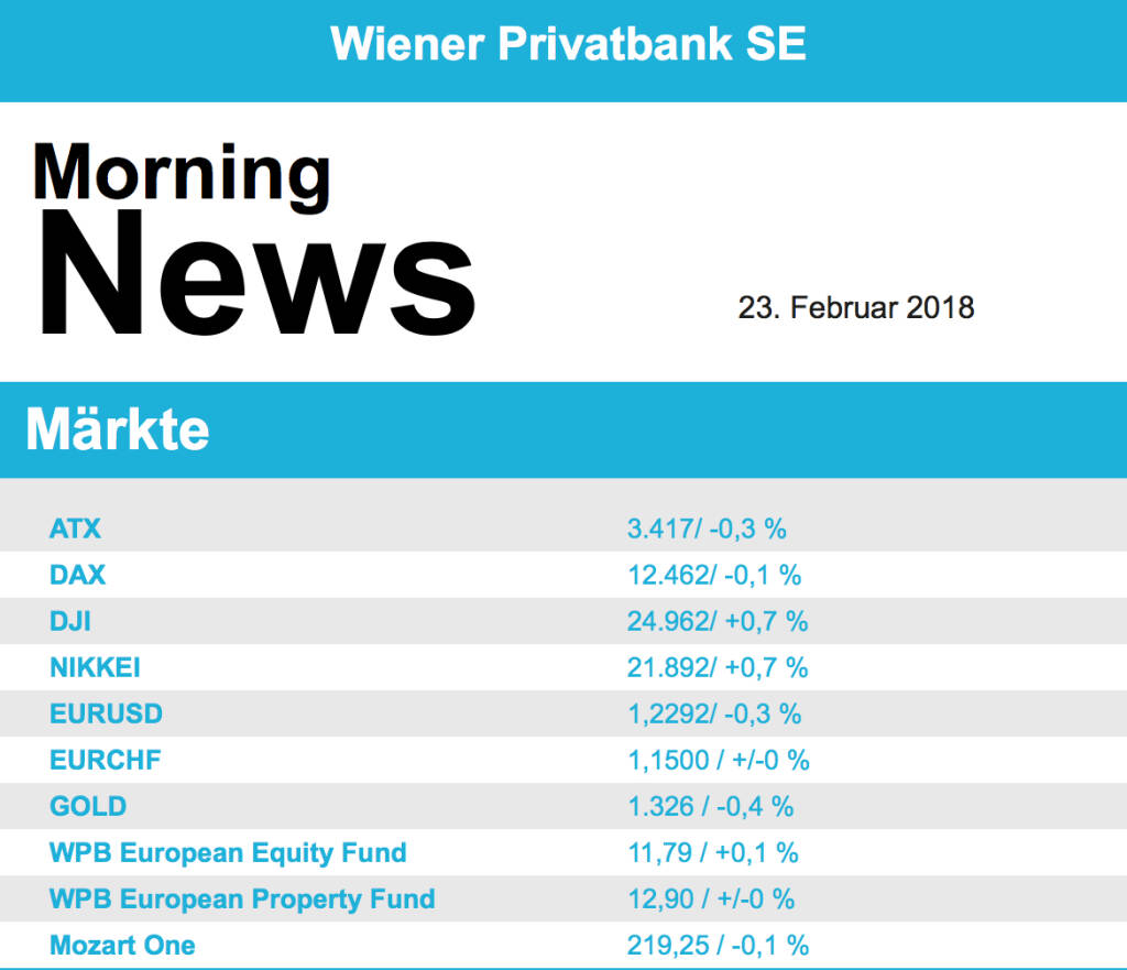 Aus den Morning News der Wiener Privatbank: "Der Wiener Aktienmarkt hat sich gestern zum Wochena...