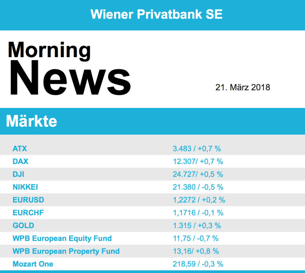 Aus den Morning News der Wiener Privatbank: "Der Wiener Aktienmarkt hat sich gestern zum Wochena...