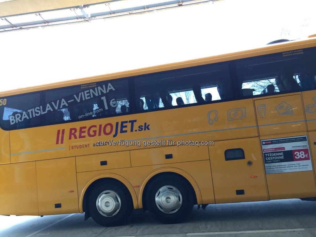 Zufällig entdeckte ich vor einigen Tagen übrigens beim Stadion-Center ein neues Fernbusterminal, mit einem Bus, der ebenfalls die Aufschrift "RegioJet" trug, die gelben Busse verbinden offenbar Städte von den Niederlanden bis nach Rumänien, ganz moderne, gepflegte Busse, ich beehre mich, einige Eindrücke davon zu vermitteln: Siehe HIER .