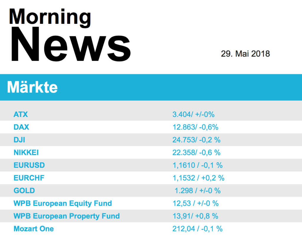 Aus den Morning News der Wiener Privatbank: "Der Wiener Aktienmarkt hat sich gestern zum Wochena...