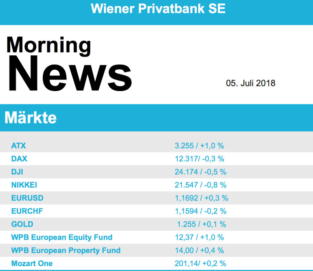 Aus den Morning News der Wiener Privatbank: "Der Wiener Aktienmarkt hat sich gestern zum Wochena...
