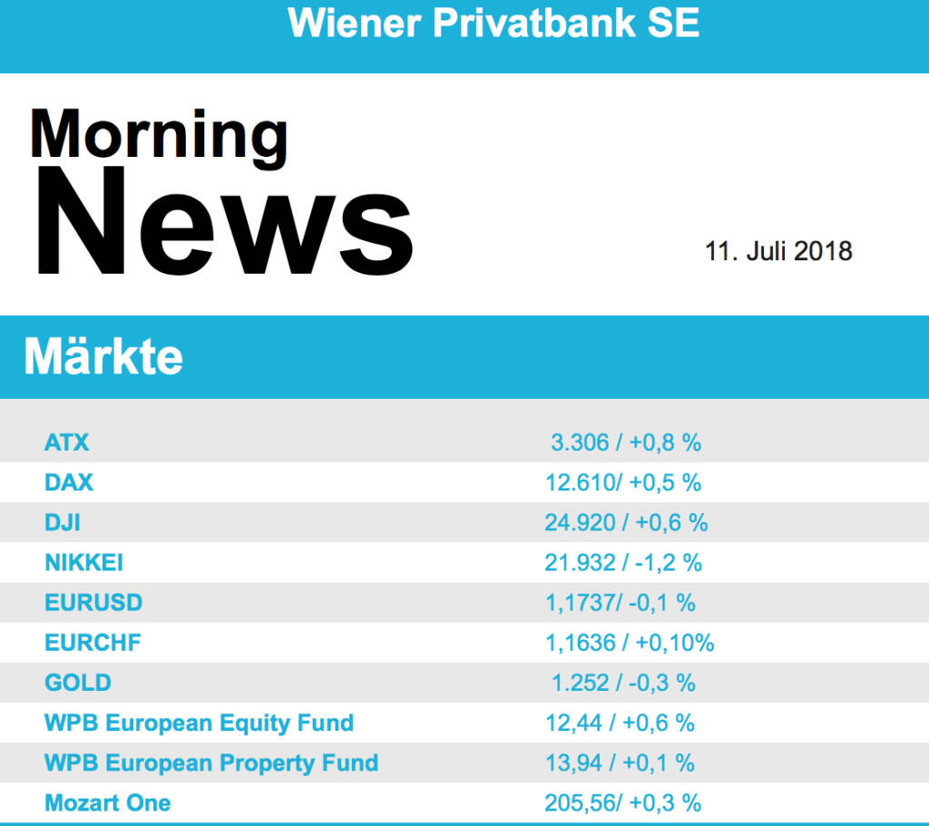 Aus den Morning News der Wiener Privatbank: "Der Wiener Aktienmarkt hat sich gestern zum Wochena...