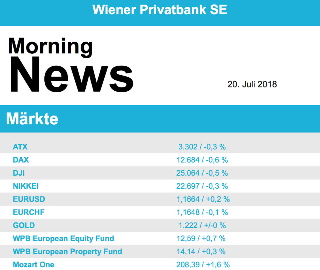 Aus den Morning News der Wiener Privatbank: "Der Wiener Aktienmarkt hat sich gestern zum Wochena...