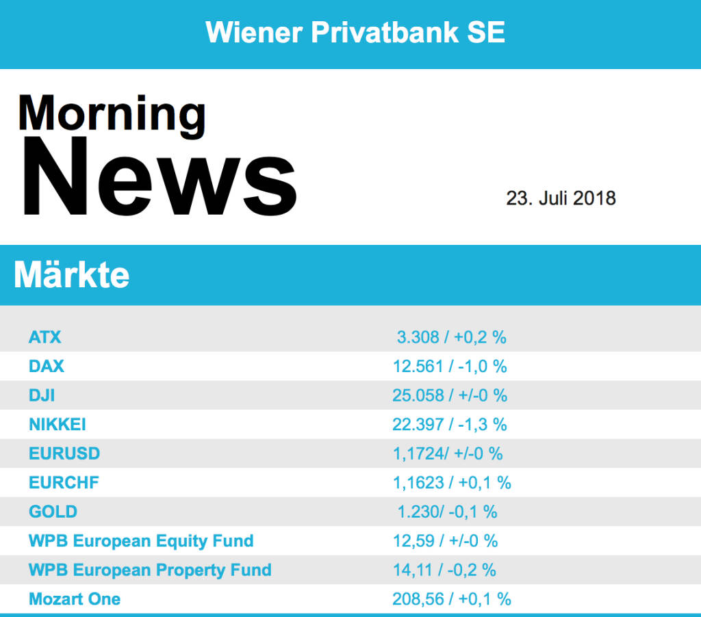 Aus den Morning News der Wiener Privatbank: "Der Wiener Aktienmarkt hat sich gestern zum Wochena...
