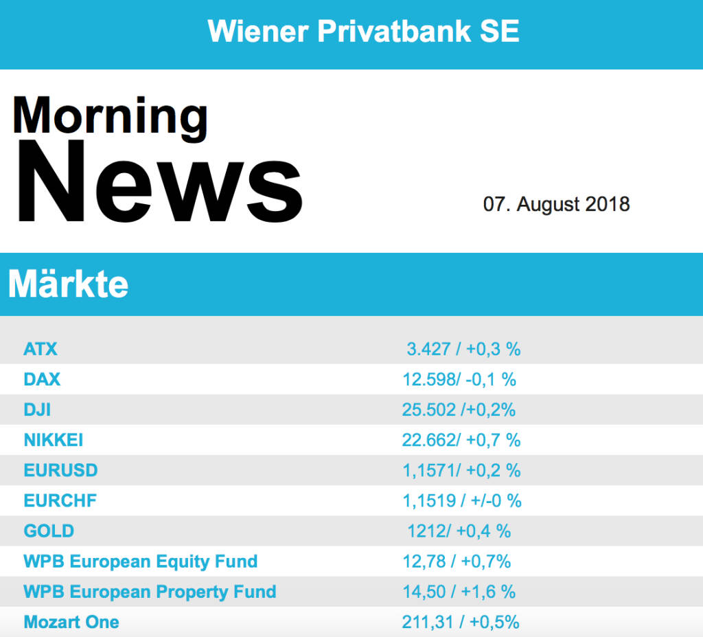 Aus den Morning News der Wiener Privatbank: "Der Wiener Aktienmarkt hat sich gestern zum Wochena...