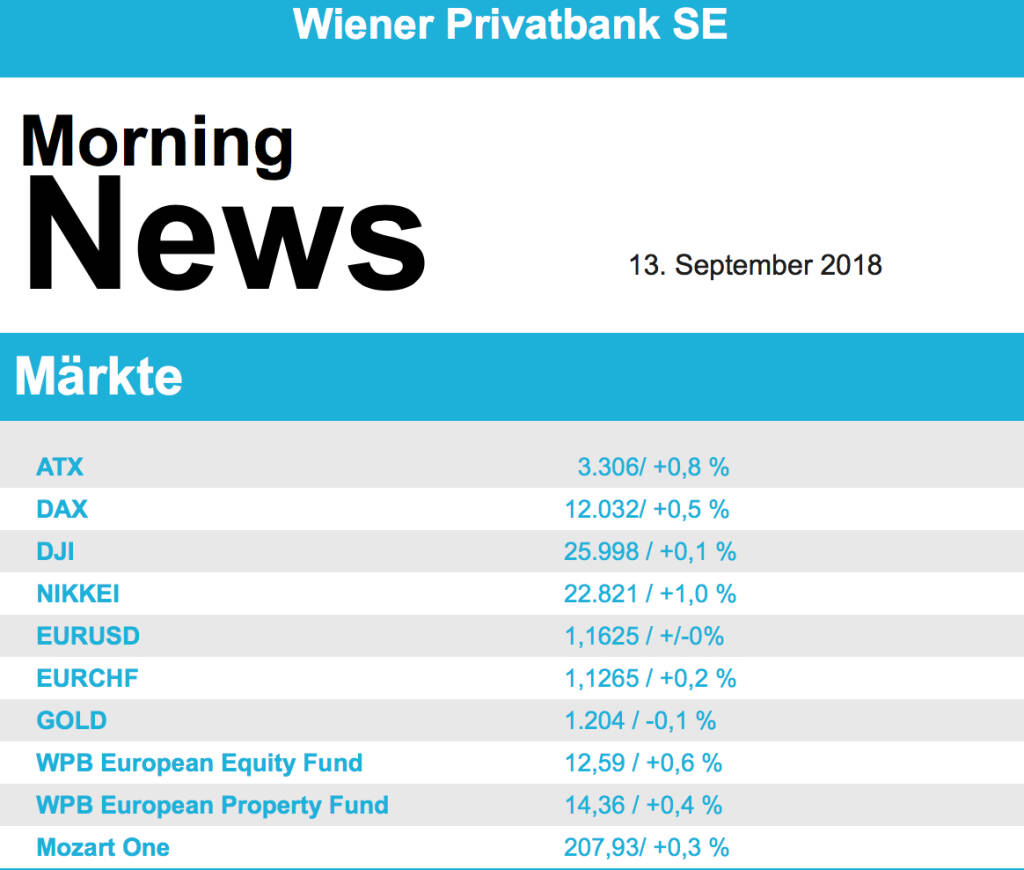 Aus den Morning News der Wiener Privatbank: "Der Wiener Aktienmarkt hat sich gestern zum Wochena...