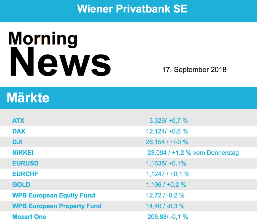 Aus den Morning News der Wiener Privatbank: "Der Wiener Aktienmarkt hat sich gestern zum Wochena...