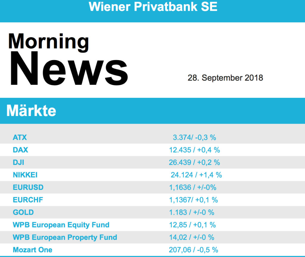 Aus den Morning News der Wiener Privatbank: "Der Wiener Aktienmarkt hat sich gestern zum Wochena...