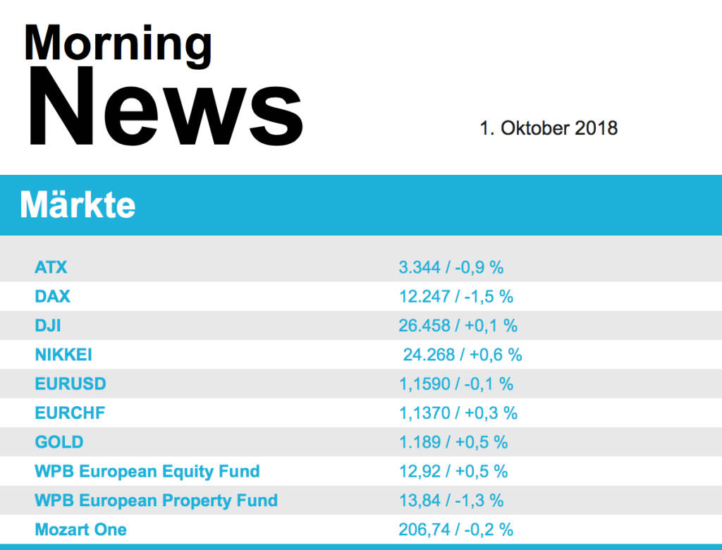 Aus den Morning News der Wiener Privatbank: "Der Wiener Aktienmarkt hat sich gestern zum Wochena...
