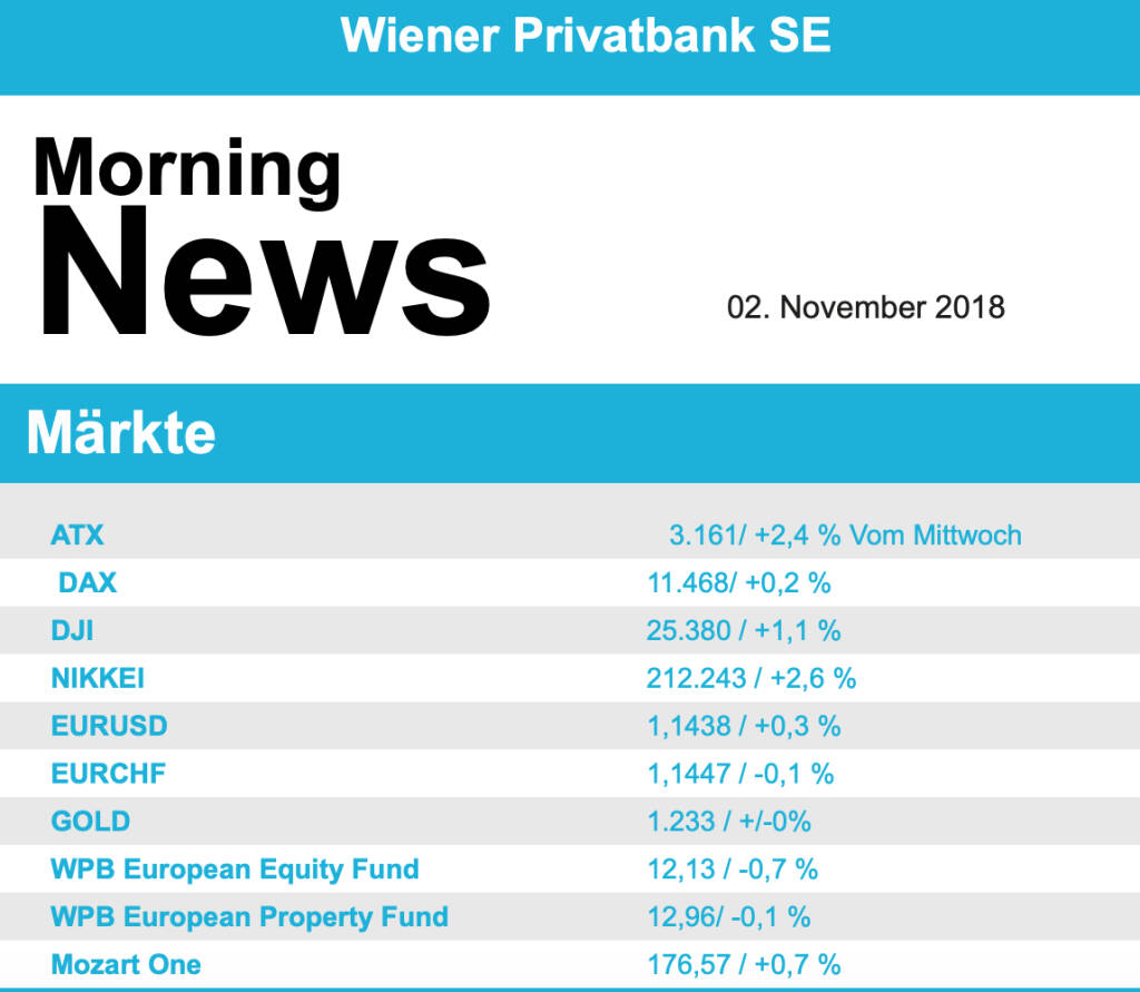Aus den Morning News der Wiener Privatbank: "Der Wiener Aktienmarkt hat sich gestern zum Wochena...