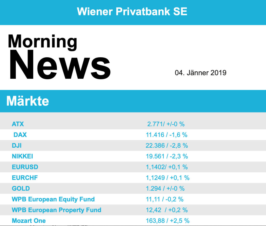 Aus den Morning News der Wiener Privatbank: "Der Wiener Aktienmarkt hat sich gestern zum Wochena...