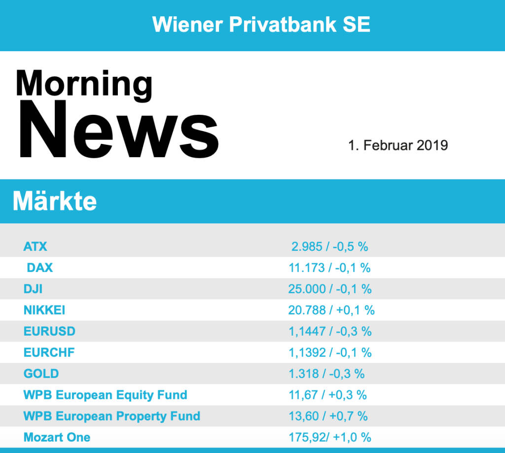 Aus den Morning News der Wiener Privatbank: "Der Wiener Aktienmarkt hat sich gestern zum Wochena...