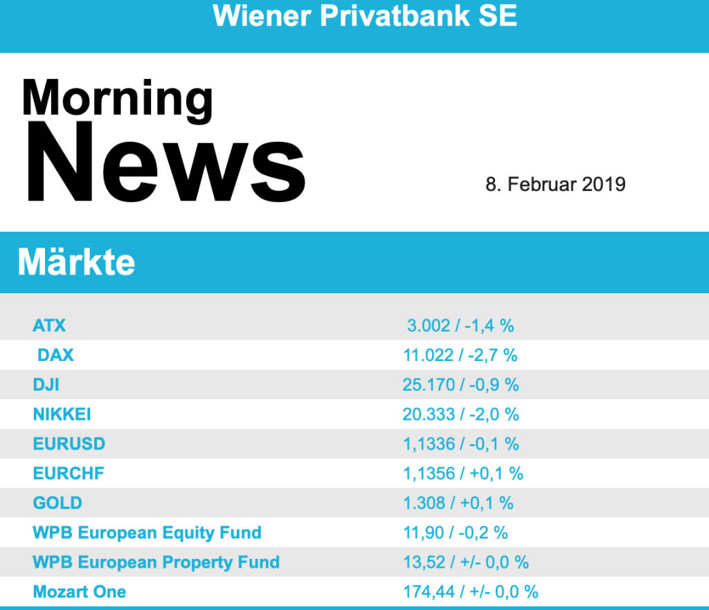 Aus den Morning News der Wiener Privatbank: "Der Wiener Aktienmarkt hat sich gestern zum Wochena...