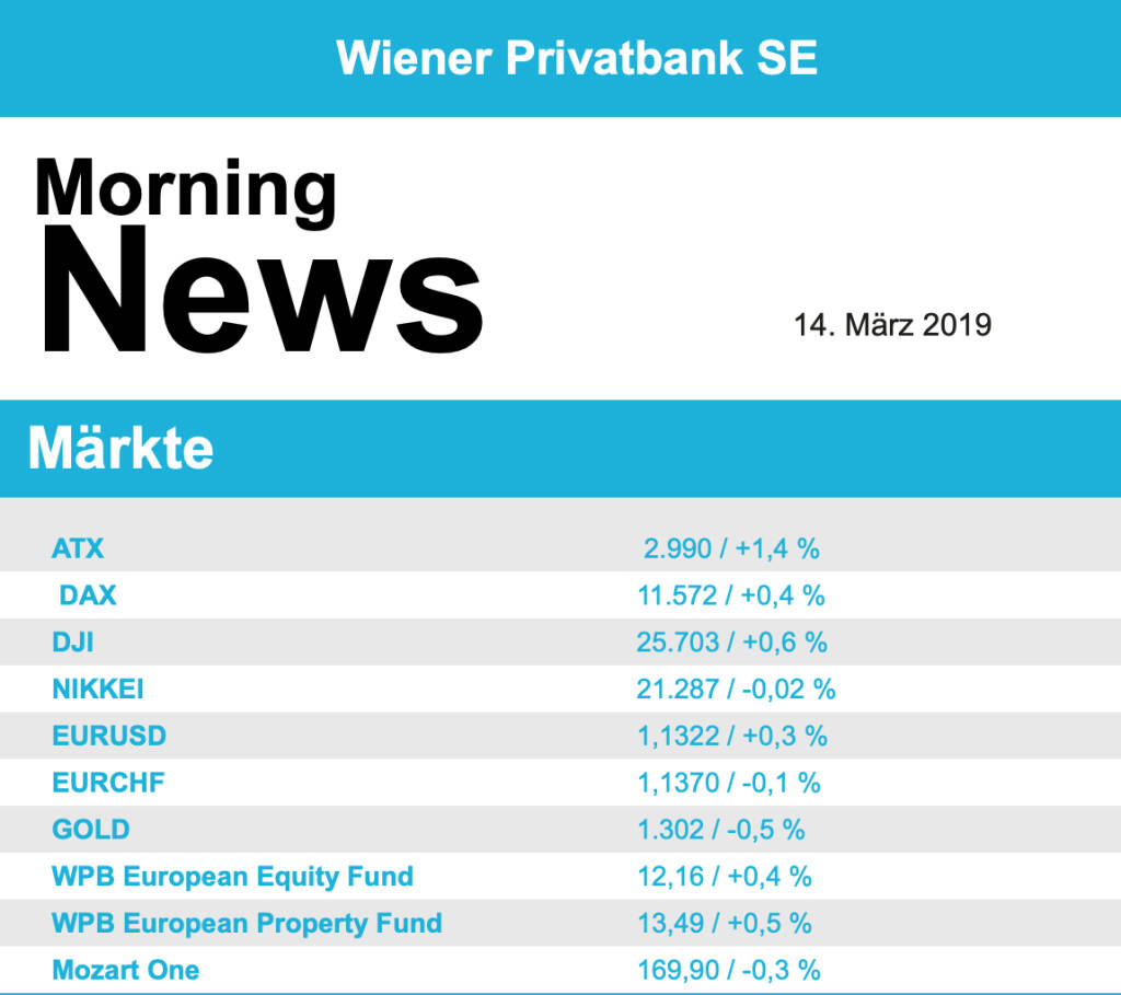 Aus den Morning News der Wiener Privatbank: "Der Wiener Aktienmarkt hat sich gestern zum Wochena...