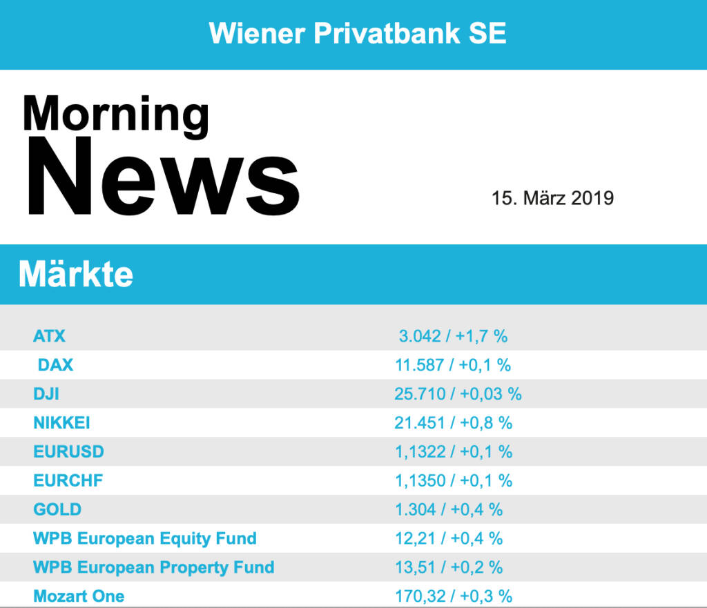 Aus den Morning News der Wiener Privatbank: "Der Wiener Aktienmarkt hat sich gestern zum Wochena...