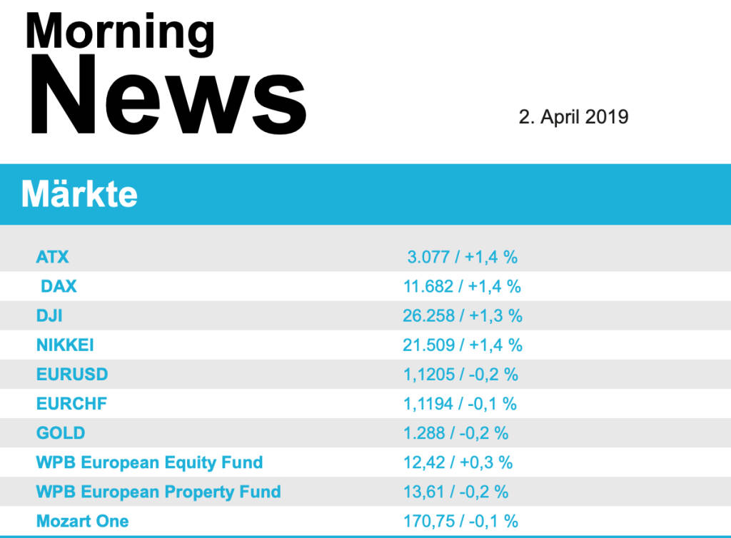 Aus den Morning News der Wiener Privatbank: "Der Wiener Aktienmarkt hat sich gestern zum Wochena...