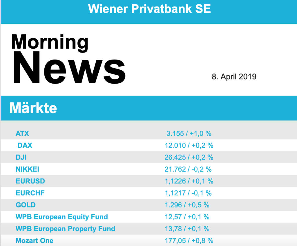 Aus den Morning News der Wiener Privatbank: "Der Wiener Aktienmarkt hat sich gestern zum Wochena...
