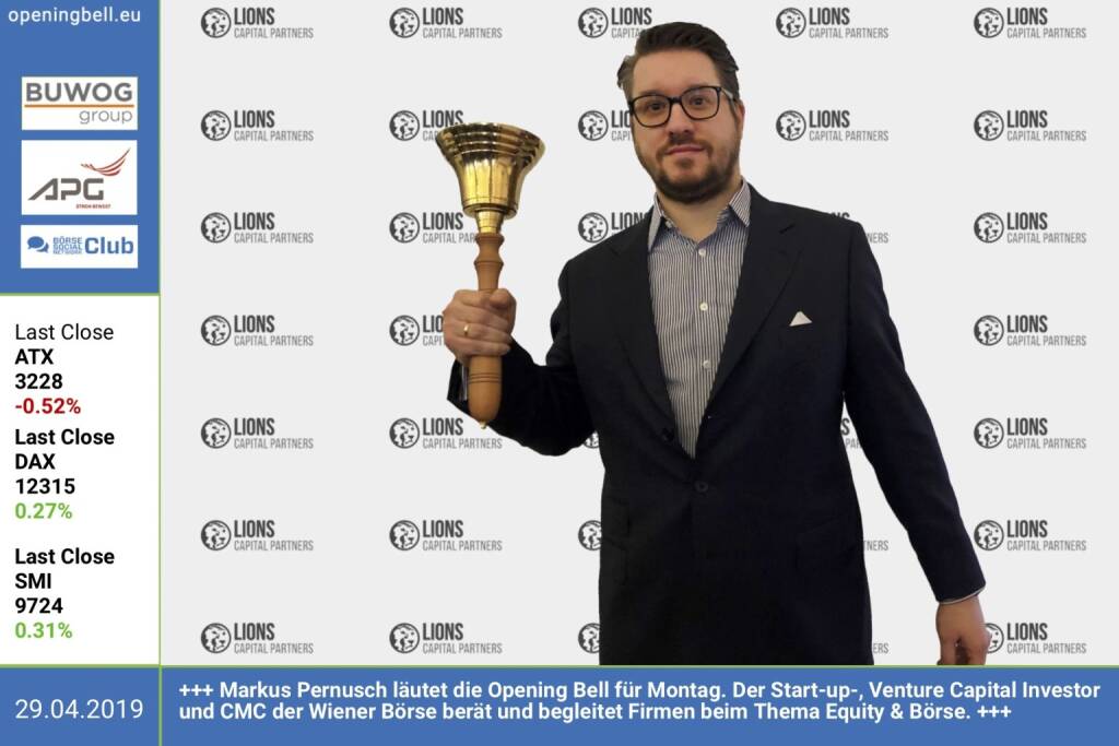 29.4.: Markus Pernusch läutet die Opening Bell für Montag. Der Start-up-, Venture Capital Investor und CMC der Wiener Börse berät und begleitet Firmen beim Thema Equity & Börse. http://www.lionscapitalpartners.com https://www.facebook.com/groups/GeldanlageNetwork