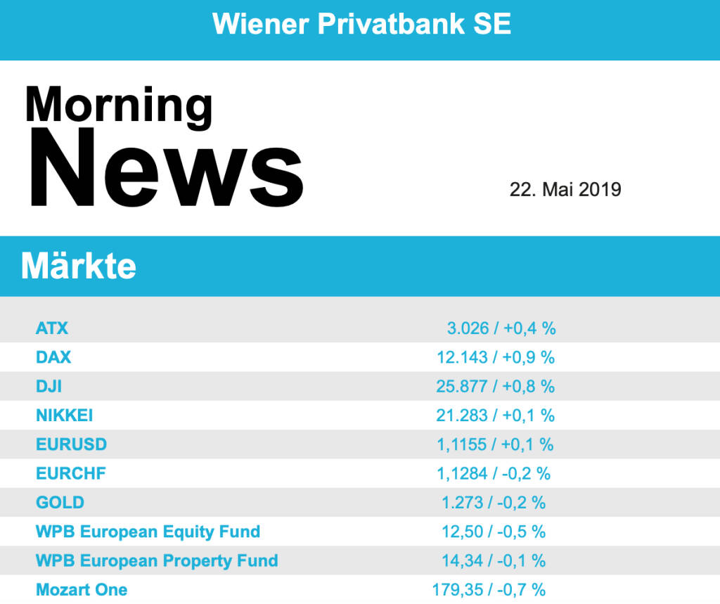 Aus den Morning News der Wiener Privatbank: "Der Wiener Aktienmarkt hat sich gestern zum Wochena...