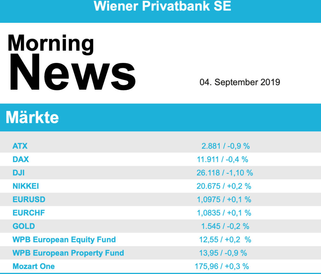 Aus den Morning News der Wiener Privatbank: "Der Wiener Aktienmarkt hat sich gestern zum Wochena...