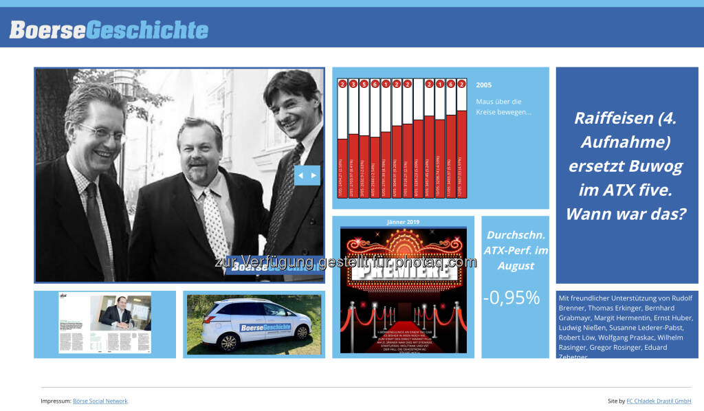 Unter https://boersegeschichte.at haben wir nun die Beta-Version der Website eröffnet. Bei jedem Klick auf die Seite setzt sich der Inhalt neu zusammen. Was man hier sieht, ist erst ca. 1 Prozent von dem, was wir in der Schublade haben. Am besten bookmarken und immer wieder hinsehen.