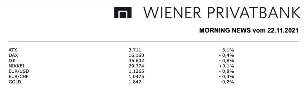 Aus den Morning News der Wiener Privatbank: "Der Wiener Aktienleitindex ATX hat am Freitag in ei...