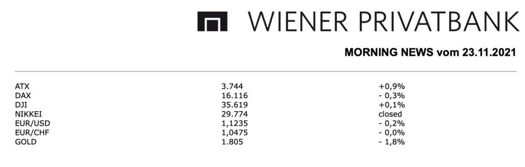 Aus den Morning News der Wiener Privatbank: "Der Wiener Aktienmarkt hat sich gestern Dienstag mi...