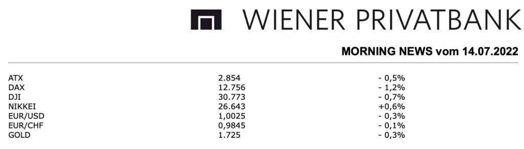 Aus den Morning News der Wiener Privatbank: Gegen die schwache Stimmung, die in ganz Europa herrschte, konnte sich auch der heimische Markt nicht durchsetzen, für den ATX ging es um 0,5% nach unten, was deutlich besser war als die großen Börsen. Die Telekom Austria hatte am Vorabend Geschäftszahlen vorgelegt, das größte heimische Telekomunternehmen hat im ersten Halbjahr fast 300 Millionen Euro Gewinn ausgewiesen, das war um ein Viertel mehr als im ersten Halbjahr 2021 und deutlich besser, als der Markt erwartet hatte, die Aktie konnte 0,8% zulegen. Semperit konnte ein Plus von 2,8% erzielen und war damit stärkster Titel des gestrigen Handels, das Unternehmen investiert 110 Millionen Euro in die Schlauchproduktion im Werk im tschechischen Odry, Semperit ist nach eigenen Angaben bei Hydraulikschläuchen weltweit die Nummer 3 und bei Industrieschläuchen die Nummer 2 in Europa. Schwach waren gestern wieder die heimischen Banken, Bawag verbilligte sich um 2,5%, die Erste Group musste um 1,3% nachgeben und für die Raiffeisen Bank International gab es ein Minus von 1,2%.