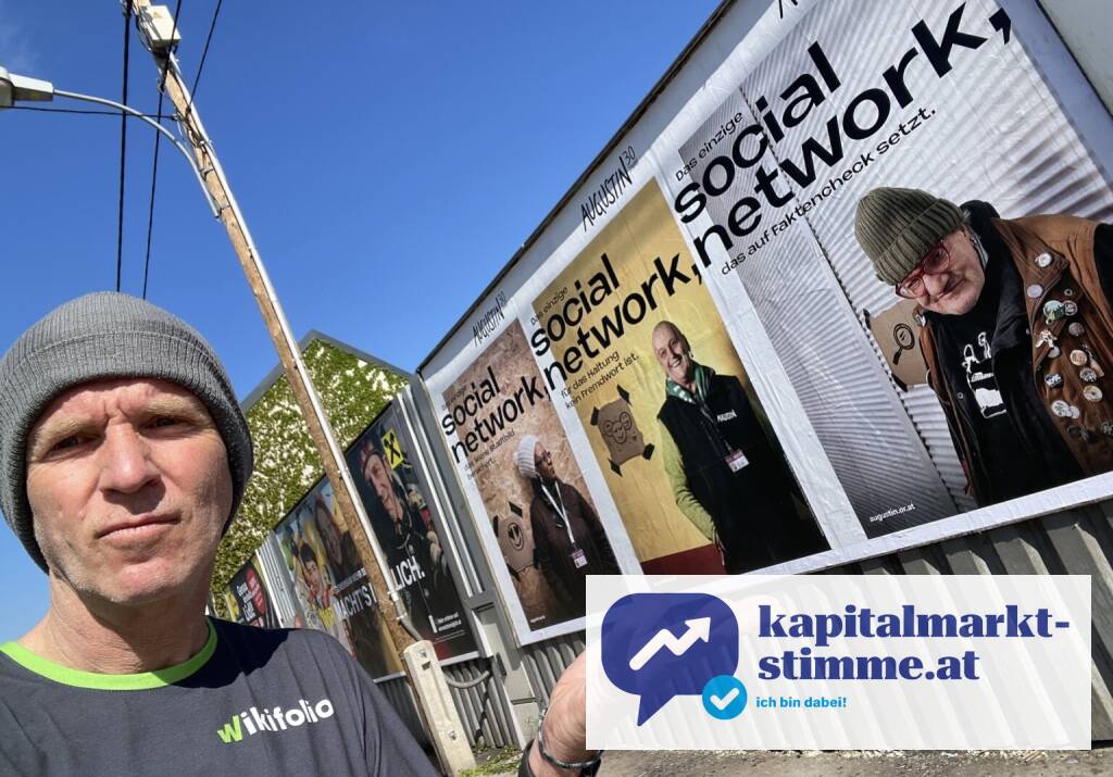 Intro: Sehe ich doch eine wunderbar gestaltete Werbelinie vom Augustin, die sich aus der Entfernung noch als eigene Werbung offenbart hat, weil wir ja das Börse Social Network sind und hier vor allem "social network" sichtbar war. Was hat da unsere Werbeagentur gezaubert? Ah ja, Blödsinn, hab ja gar keine. Bin ja selbst unsere Werbeagentur.Als ich dann hin bin, hab ich natürlich erst die Bildsprache bewundert und dann gelesen. Auf dem Sujet ganz rechts heisst es: "Das einzige social network, das auf Faktencheck setzt". Und da muss ich anmerken: Hey, glaub ich Euch, dass ihr das tut. Aber auch das Börse Social Network setzt auf Faktencheck!