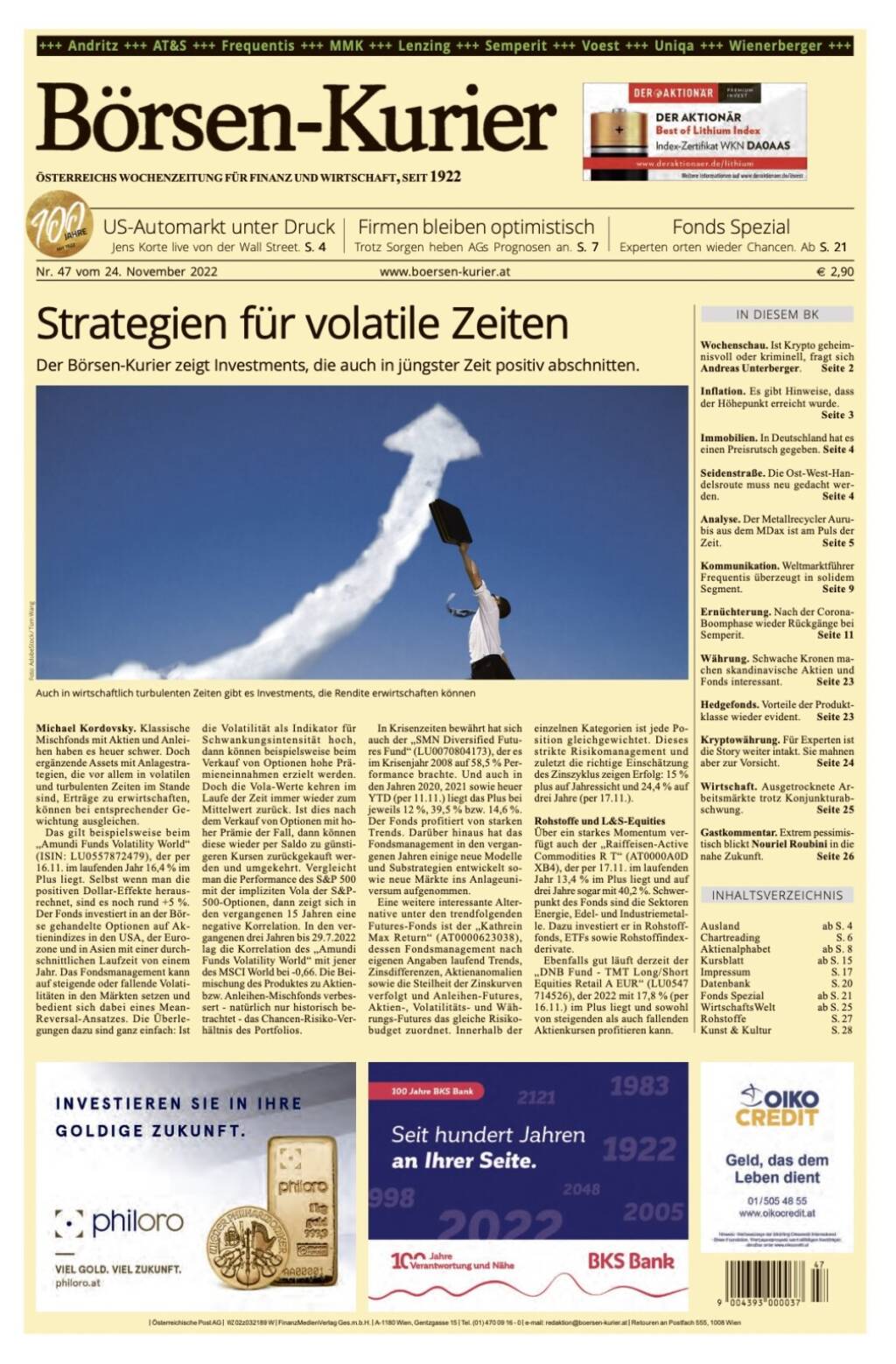 Und wieder ein Blick in den Börsen-Kurier Nr. 47 vom 24. November 2022: www.boersen-kurier.at