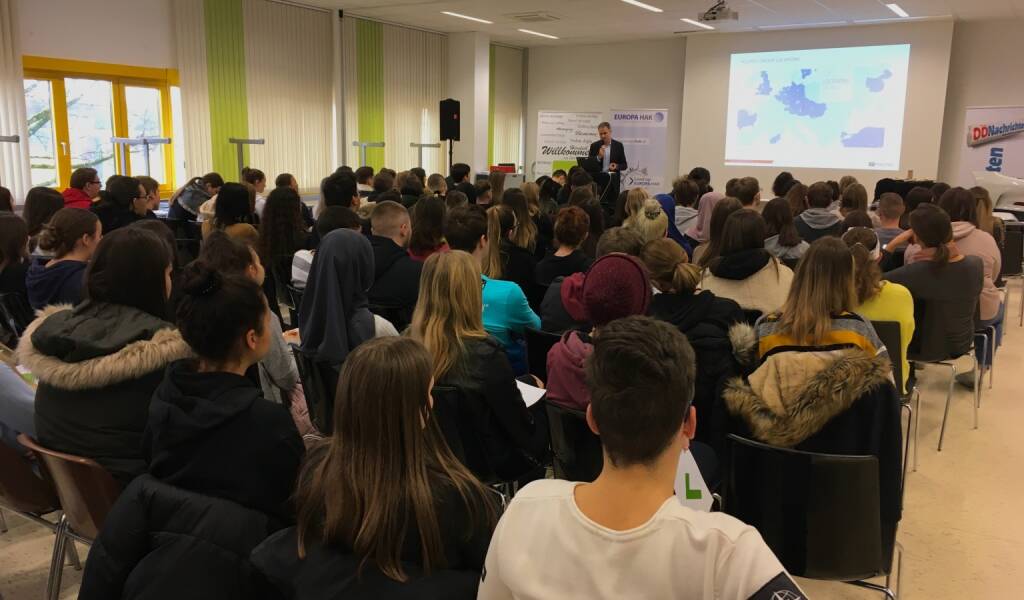 Polytec geht in die Schule. Polytec-CFO Peter Haidenek war im gemeinsamen Einsatz mit IR-Chef Paul Rettenbacher in der HAK Traun. Thema: Natürlich Financial Literacy. Moderiert hat Ulrike Rubasch von OÖNachrichten. 150 Schüler/innen horchten den Worten von Haidenek, der nicht nur die aktuelle Situation in der Autoindustrie erklärte, sondern die Schüler motivierte, sich mit der Finanzwelt zu beschäftigen, die spannender ist, als man vielleicht anfangs glaubt. Auch er brachte einen Lebenstipp: Wichtig war ihm zu vermitteln, mutig zu sein und mit positiver Einstellung ins Leben zu schreiten. Natürlich sind gute Noten und eine abgeschlossene Ausbildung der Türöffner, doch authentisch zu sein und in allem eine Chance zu sehen und diese zu nützen, sei genau so wichtig. Heute ist Polytec übrigens in Warschau und zwar am Austrian Day mit RCB und Wiener Börse.