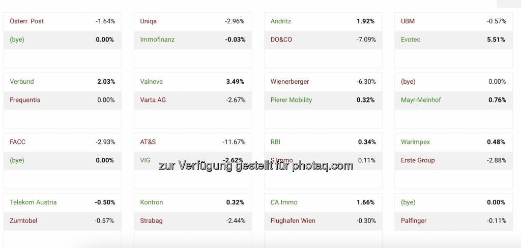 Um 11:06 liegt der ATX TR mit +2.00 Prozent im Plus bei 5924 Punkten (Ultimo 2021: 7849, -24.53% ytd). Topperformer der PIR-Group sind Erste Group mit +3.80% auf 23.375 Euro, dahinter RBI mit +3.12% auf 10.425 Euro und Wienerberger mit +3.11% auf 19.57 Euro. Zum Vergleich der DAX: 12805 (+1.21%, Ultimo 2021: 15884, -19.38% ytd).