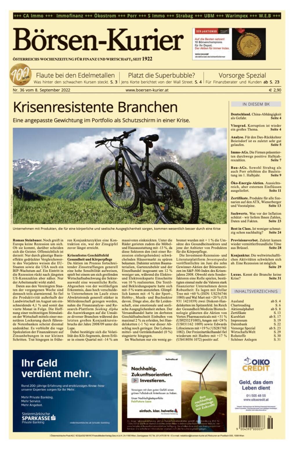 Und wieder ein Blick in den Börsen-Kurier Nr. 36 vom 8. September 2022: www.boersen-kurier.at