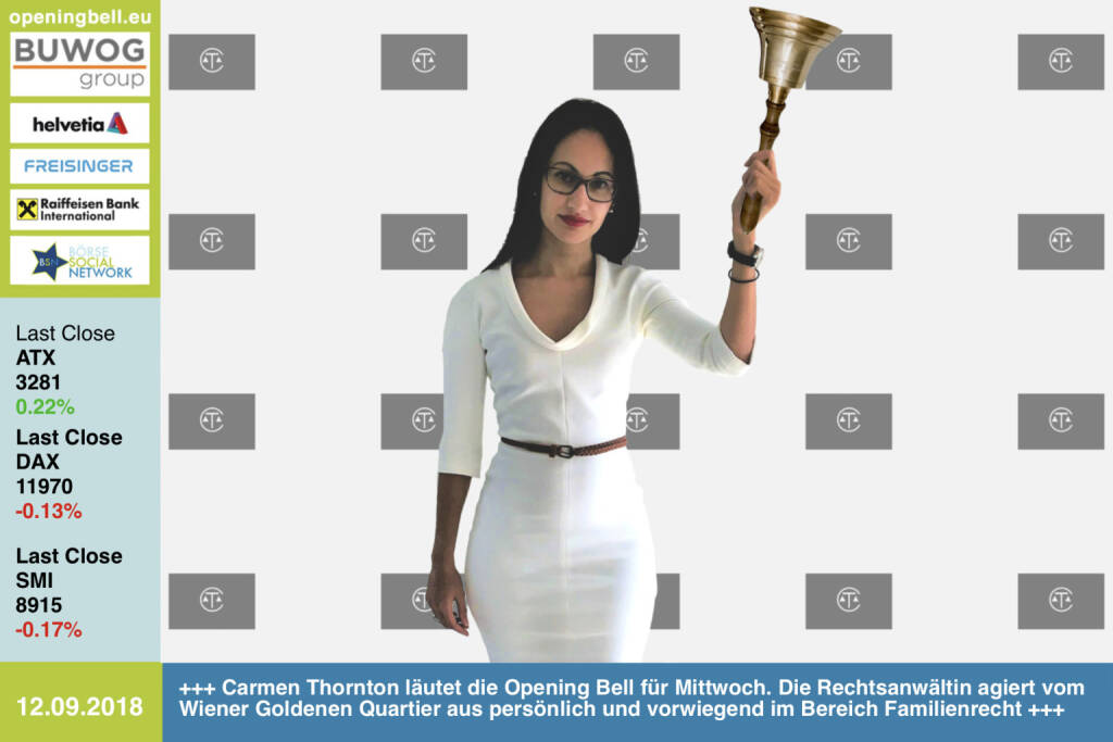 12.9.: Carmen Thornton läutet die Opening Bell für Mittwoch. Die Rechtsanwältin agiert vom Wiener Goldenen Quartier aus persönlich und vorwiegend im Bereich Familienrecht www.thornton-law.at https://www.facebook.com/groups/GeldanlageNetwork