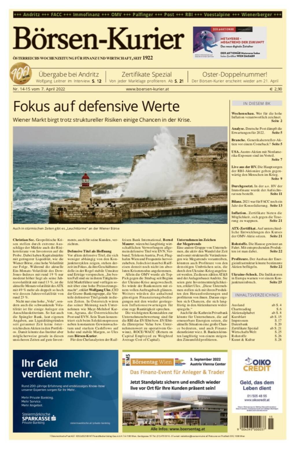 Und wieder ein Blick in den Börsen-Kurier Nr. 14-15 vom 7. April 2022, www.boersen-kurier.at