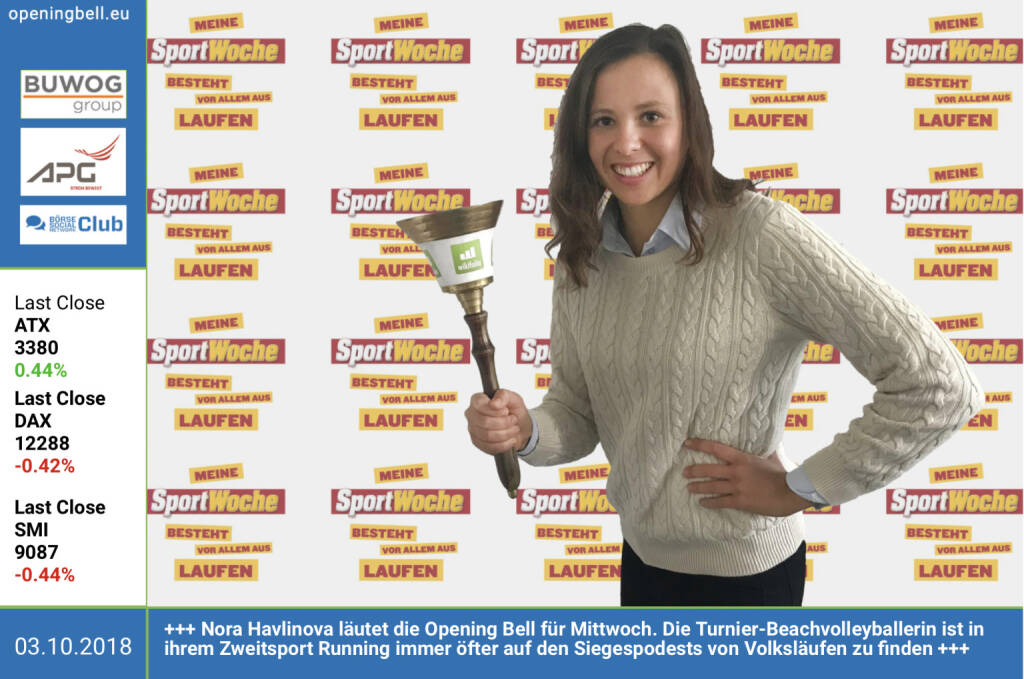 3.10.: Nora Havlinova läutet die Opening Bell für Mittwoch. Die Turnier-Beachvolleyballerin ist in ihrem Zweitsport Running immer öfter auf den Siegespodests von Volksläufen zu finden https://www.facebook.com/groups/Sportsblogged http://www.runplugged.com